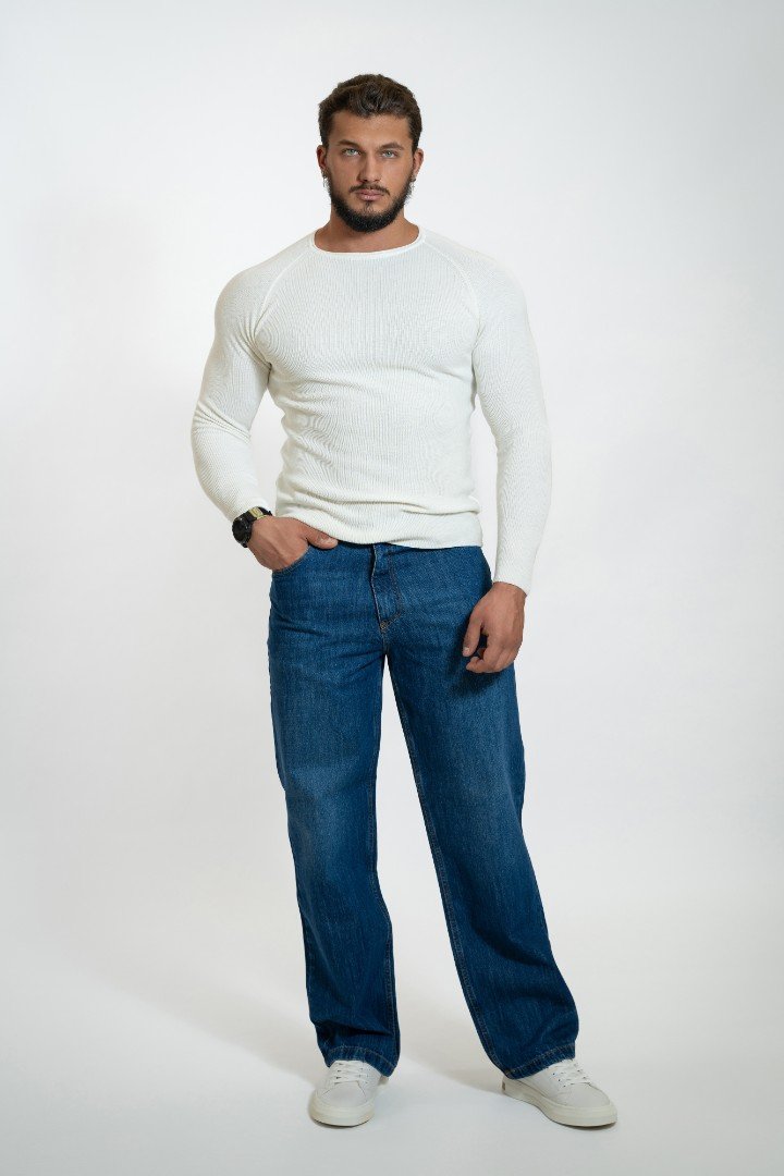 Pantaloni de barbati din denim Baggy cu fermoar și nasture.
