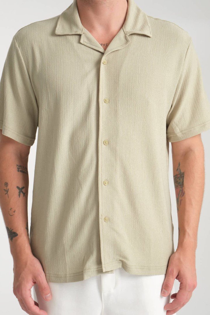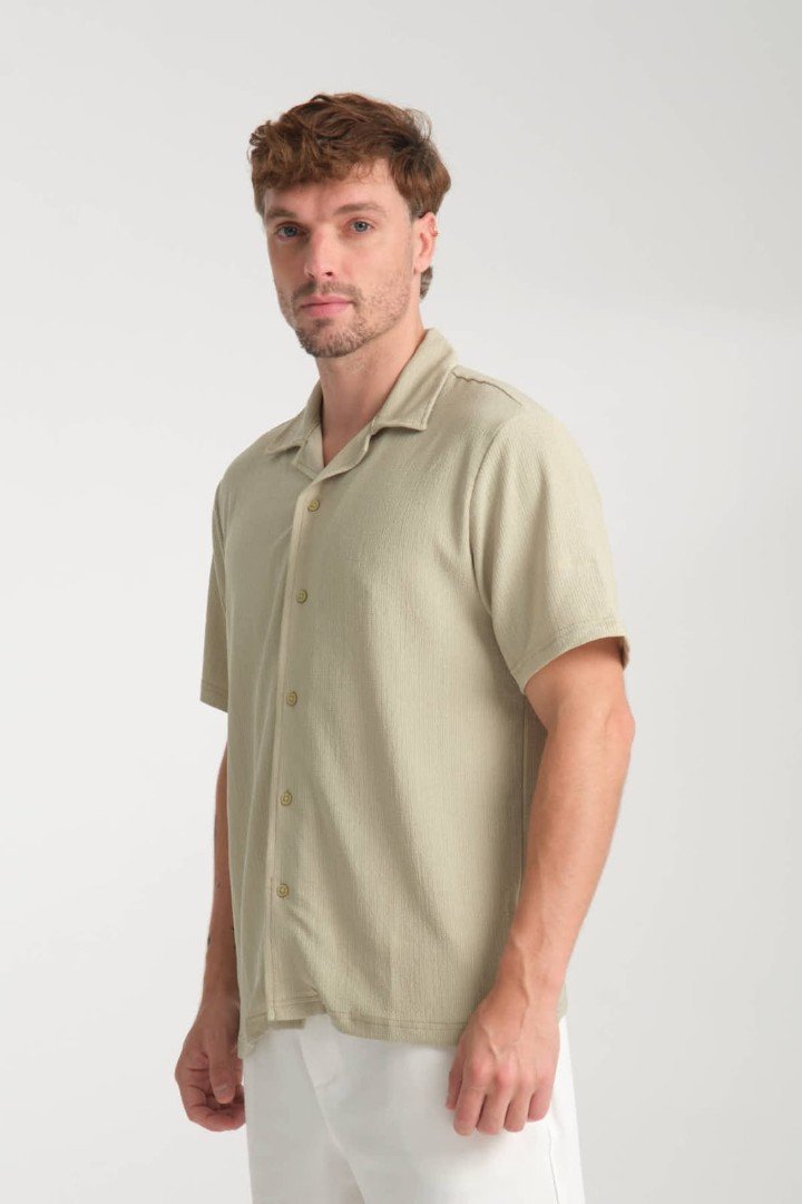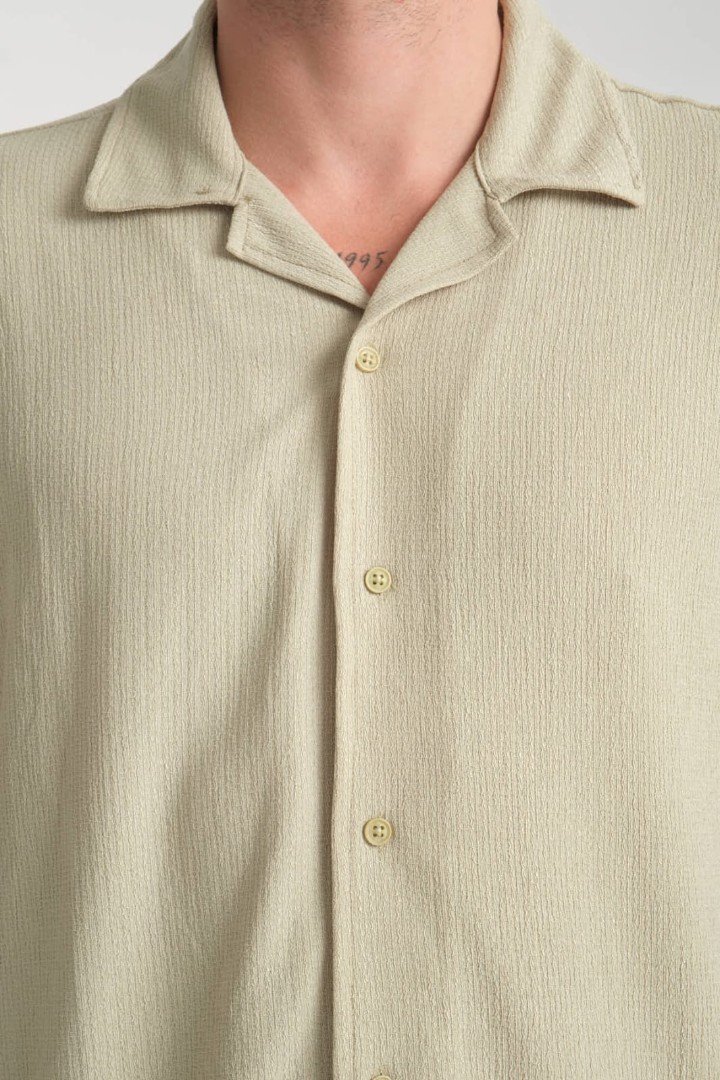 Cămașă pentru bărbați cu mâneci scurți. Nasturi in fata pe toata lungimea.