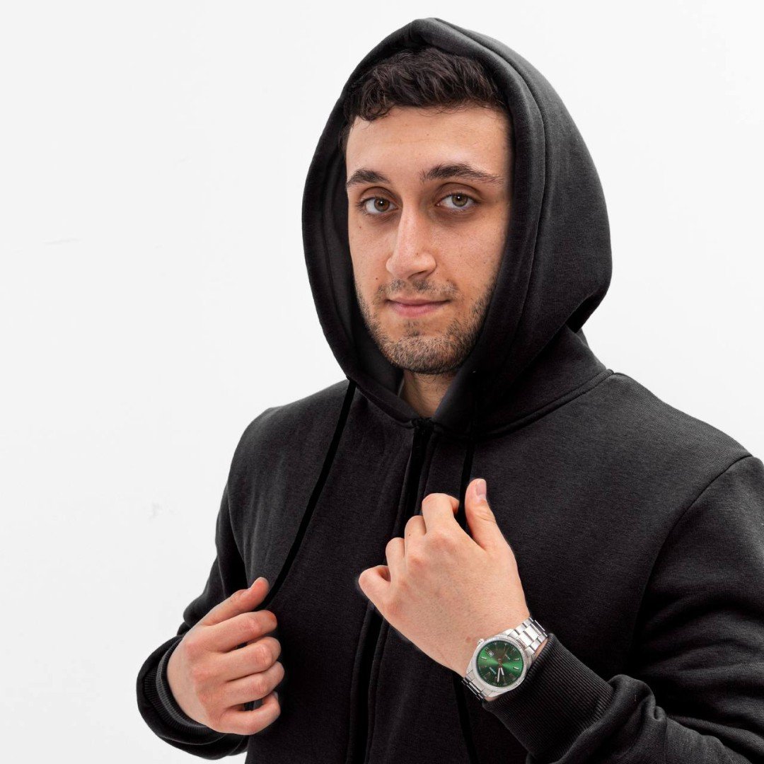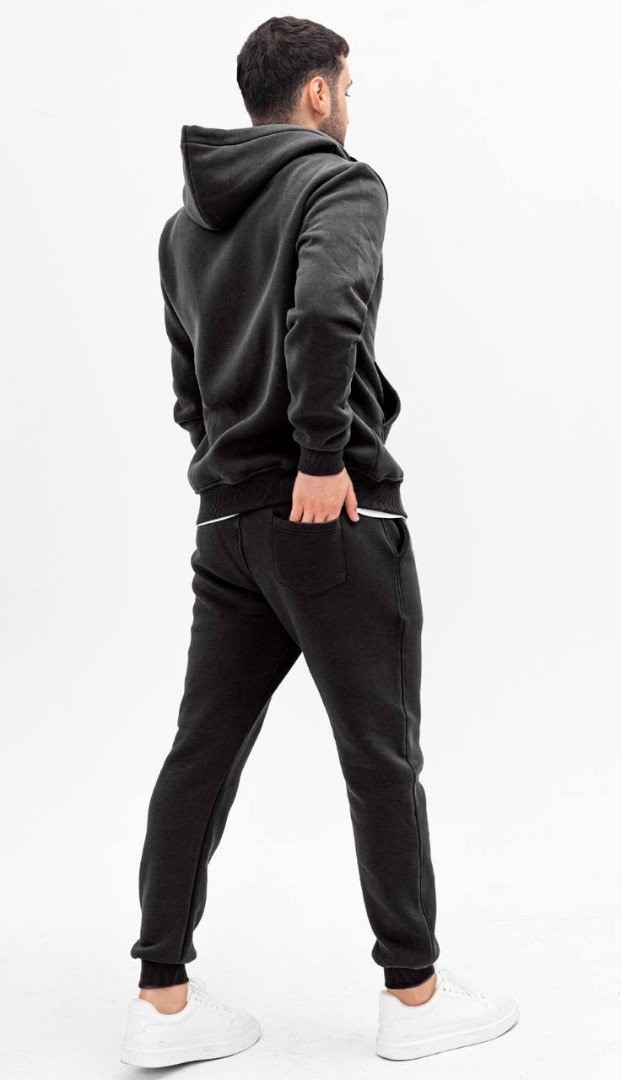 Costum sport pentru barbati. Trei fire pe fleece. Hanorac cu fermoar si gluga.
