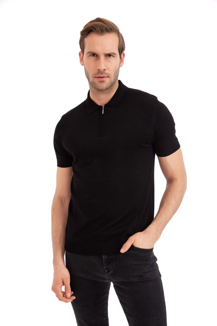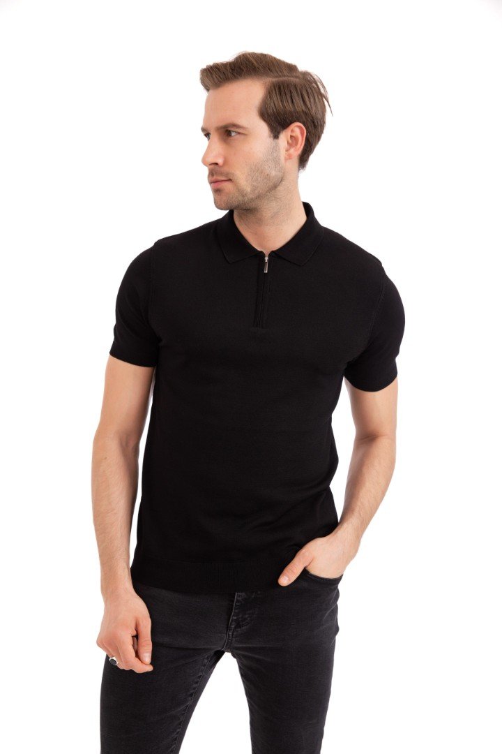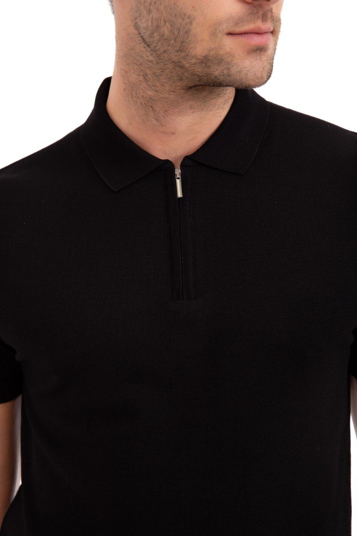 Tricou polo cu mânecă scurtă. Guler cu fermoar.
