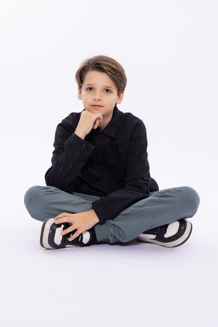 Chiar dacă zilele reci continuă, în aceste pantaloni de jogging te vei simți mereu confortabil. Pantalonii pentru băieți sunt realizați într-o nuanță delicată de albastru, cu detalii elegante de culoare neagră, creând un look sportiv cu personalitate. Pantalonii au o croială confortabilă și sunt ideali pentru relaxare, joacă sau mersul la școală.