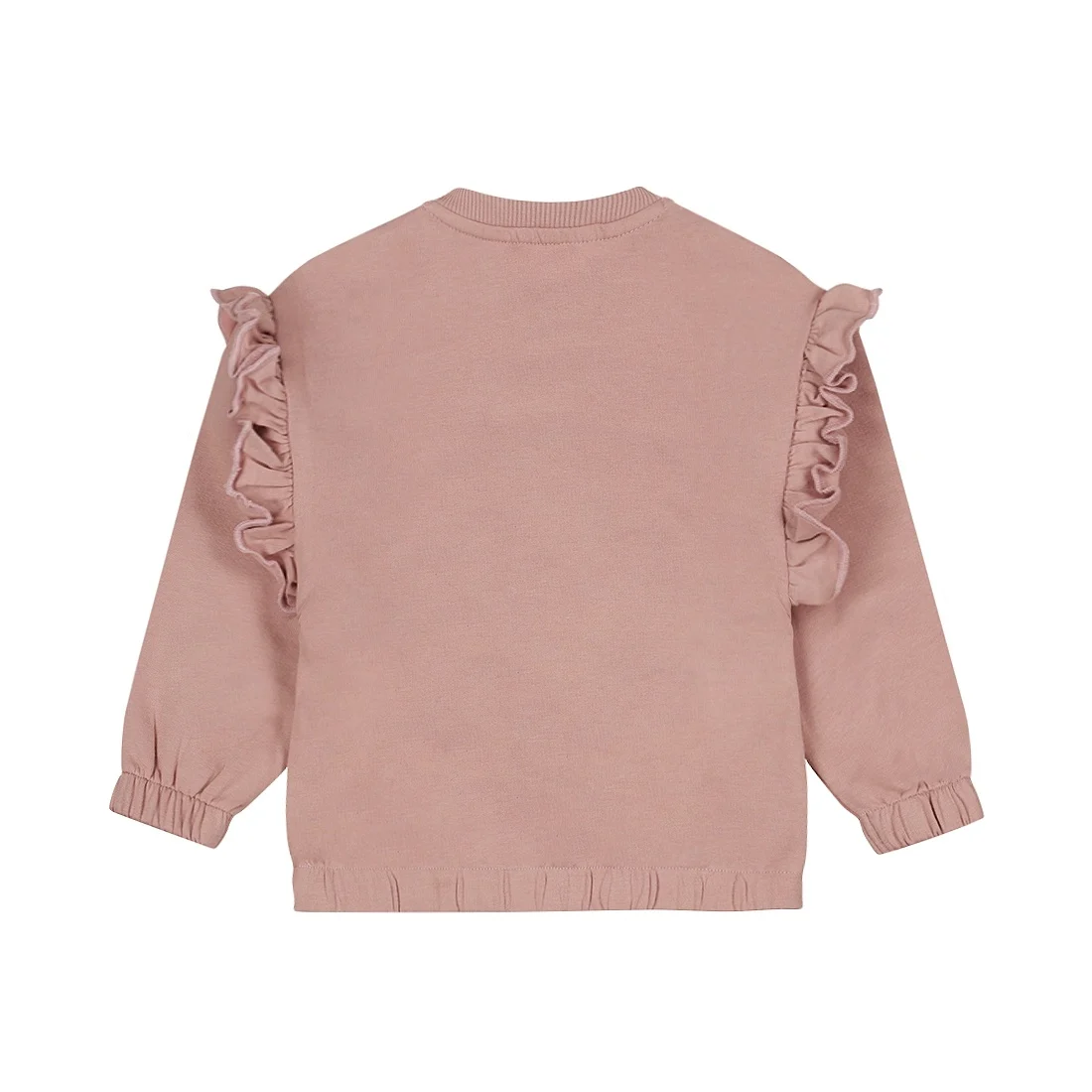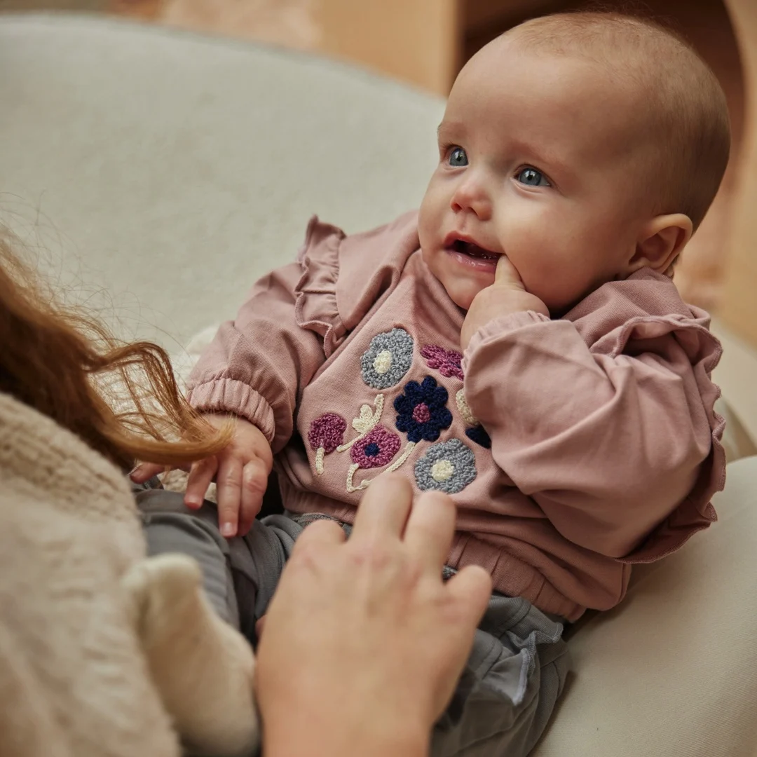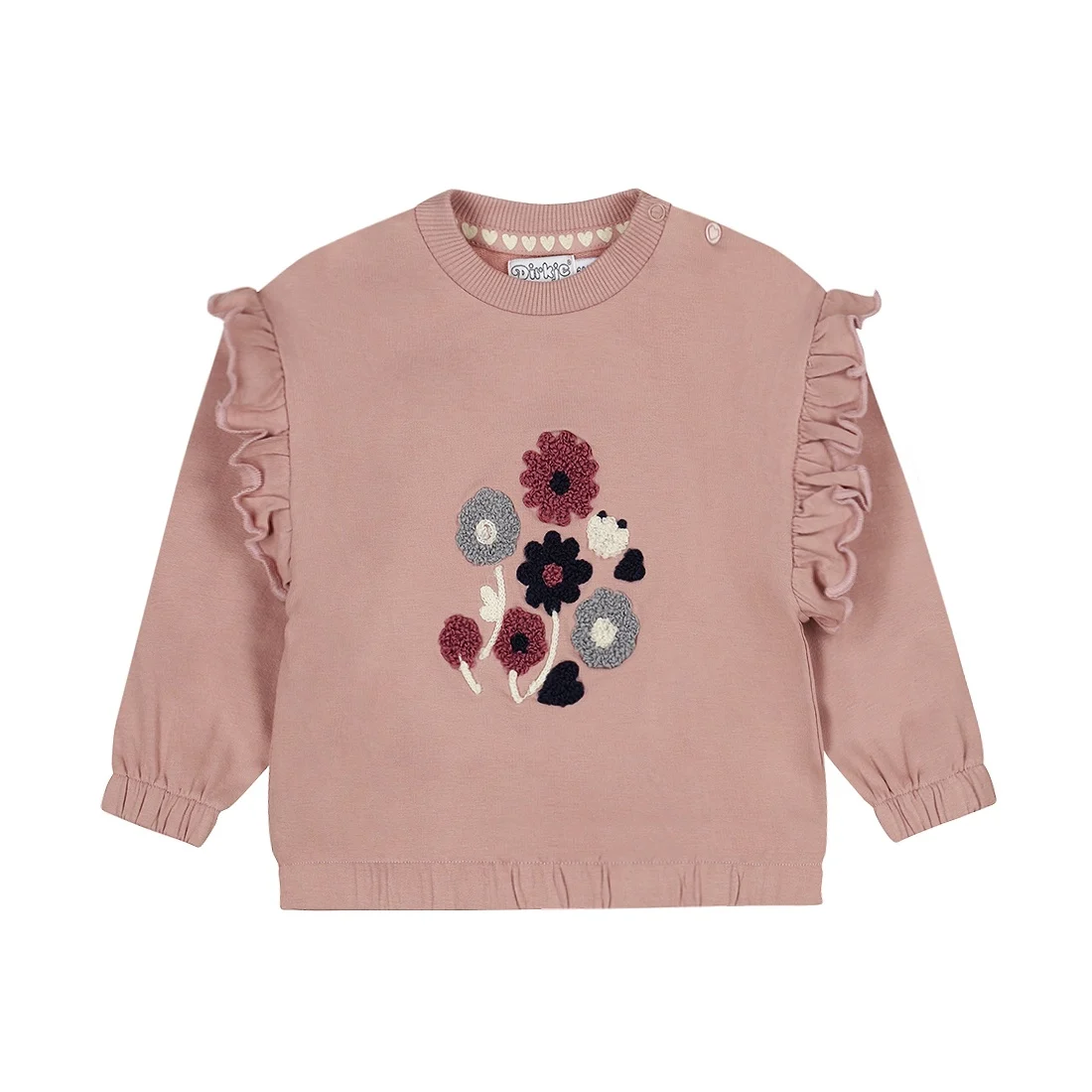 Puloverul Dirkje, cu croială lejeră, în nuanța roz pal, este un articol indispensabil în garderoba de iarnă a fetiței tale! Florile din pluș în nuanțe de gri, albastru închis și roz pal conferă puloverului un aspect vesel și elegant. Croiala ușor largă și volanele de pe mâneci conferă puloverului un aspect jucăuș. Confecționat din bumbac moale cu elasticitate, pentru un confort optim.