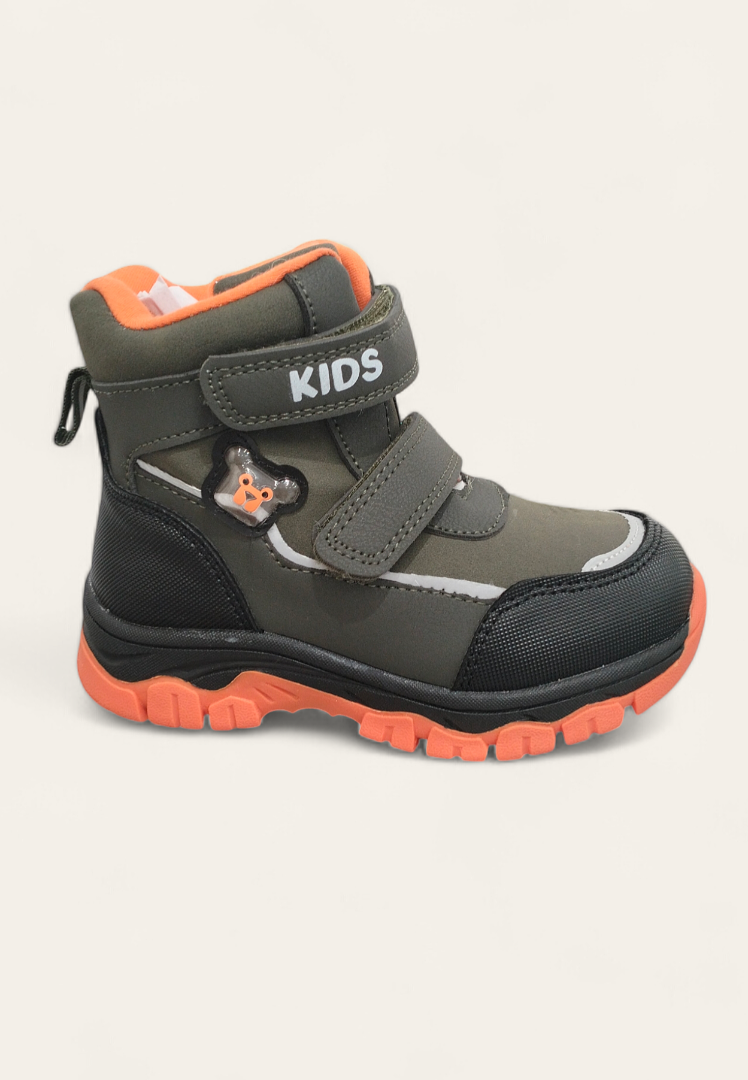 Botine pentru copii din piele sintetică cu închidere Velcro.