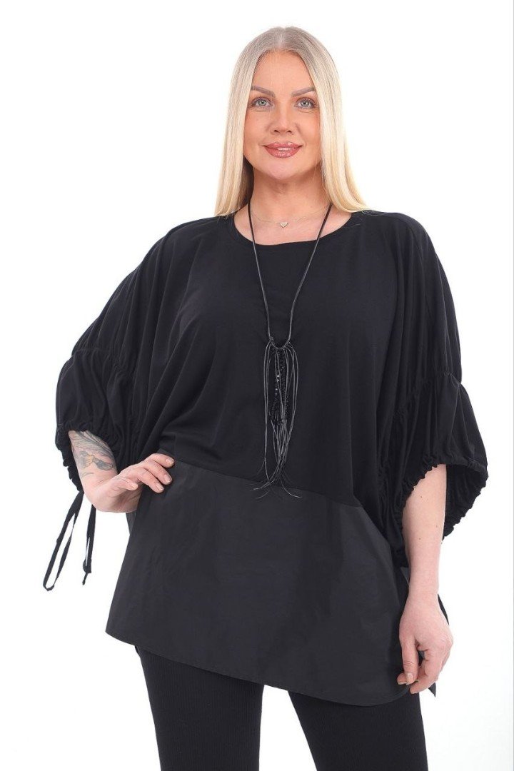 Bluză largă pentru femei cu mânecă 3/4. Ținută lejeră, cu fundul lat. Ideal pentru femeile cu forme luxuriante.