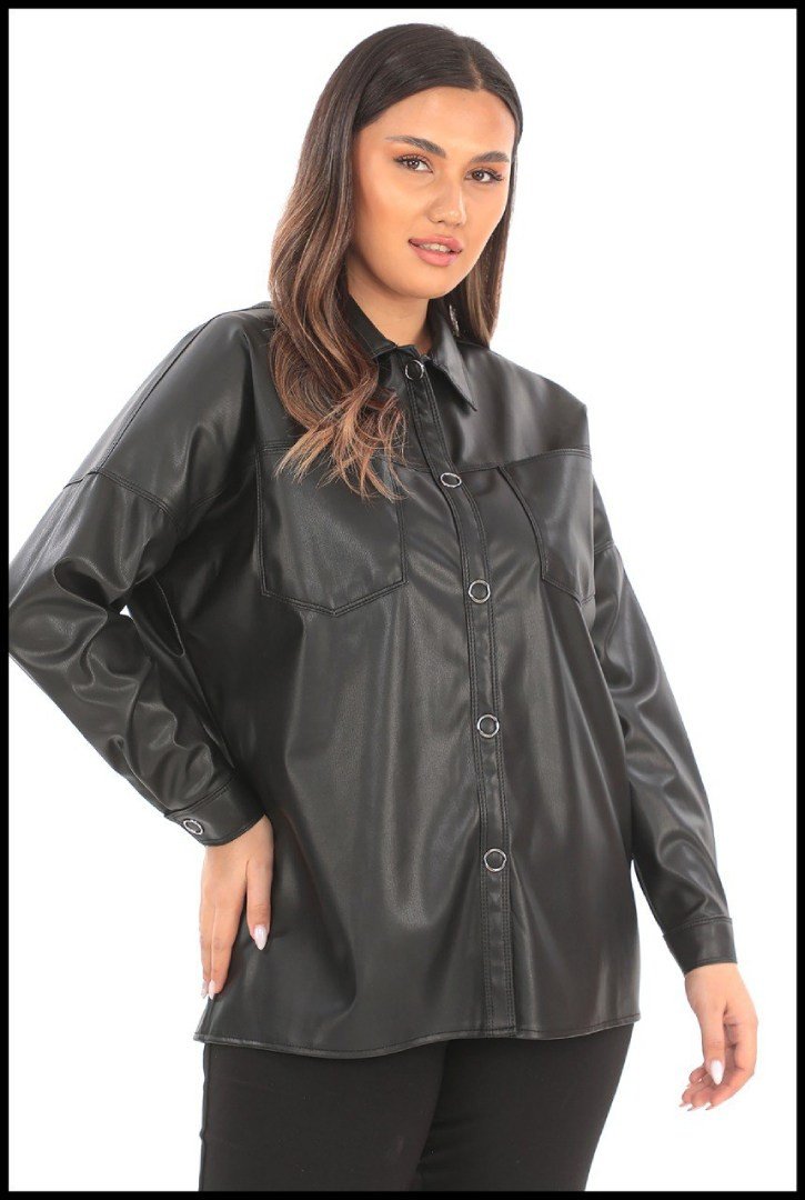 Cămașă pentru femei cu mânecă lungă cu nasturi. Imitație de piele. Mâneci lungi. 2 buzunare la piept.