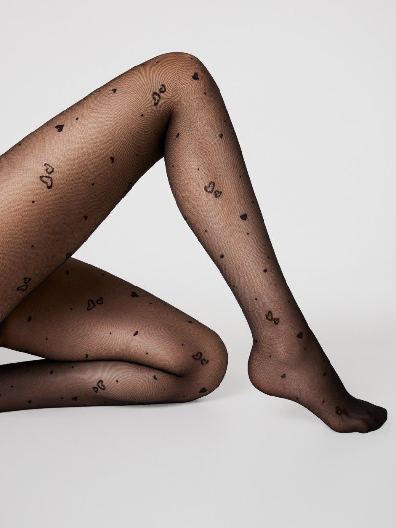 Colanti subțiri cu densitatea de 20 DEN sunt decorați cu un model fermecător în formă de inimioare.