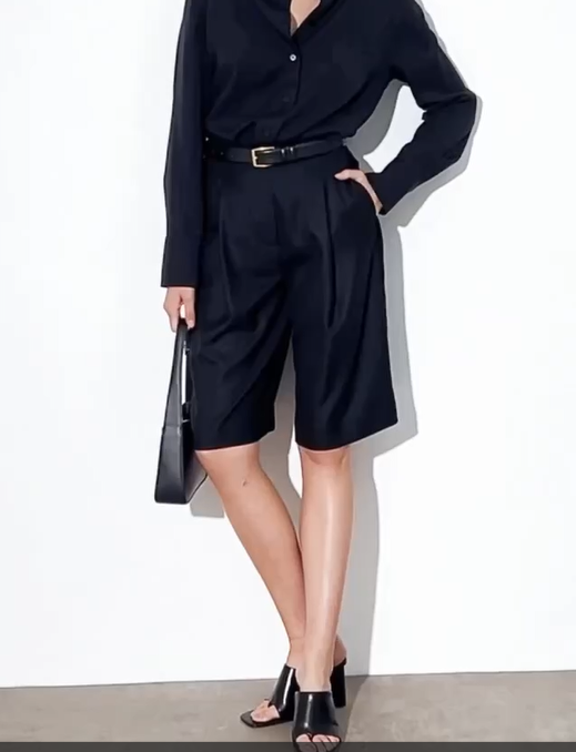 Pantaloni scurți clasici pentru femei cu închidere cu fermoar și nasturi.