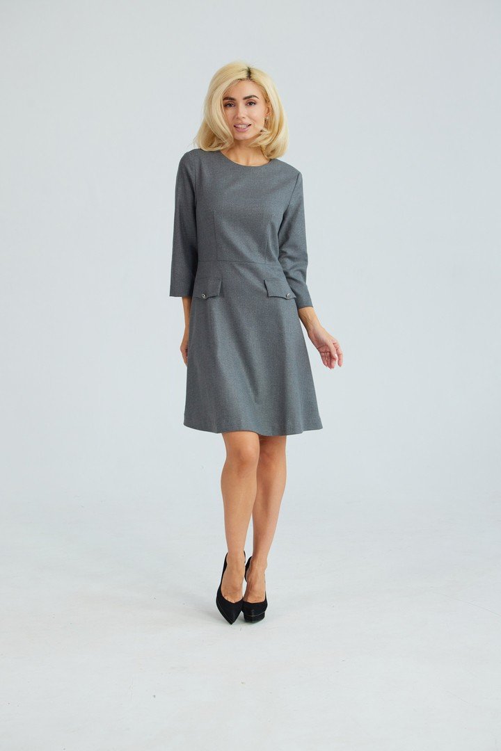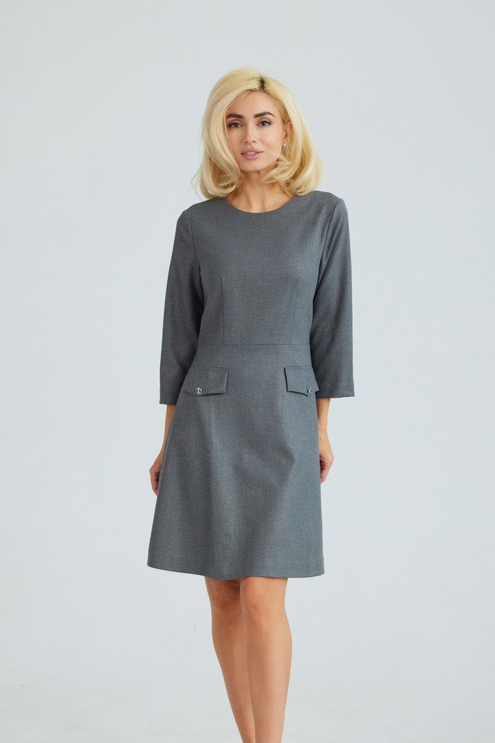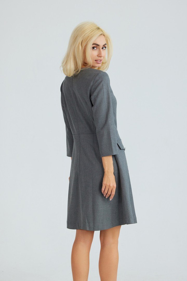 Rochie scurta cu maneca 3/4. Decolteu rotund. inchidere cu fermoar la spate.