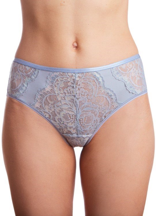 Chiloții tanga cu talie medie arată perfect pe o siluetă zveltă și ajută la crearea unui look atractiv și seducător pentru ocazii speciale. Designul maxim deschis garantează un efect invizibil sub haine, ceea ce face ca această lenjerie să fie opțiunea ideală pentru o rochie mulată sau un costum cu pantaloni. Modelul este realizat din dantelă moale și rafinată, cu un model floral mare în formă de trandafiri. Detaliul din spate este decorat cu o decupare cu ornamente metalice pe panglici.