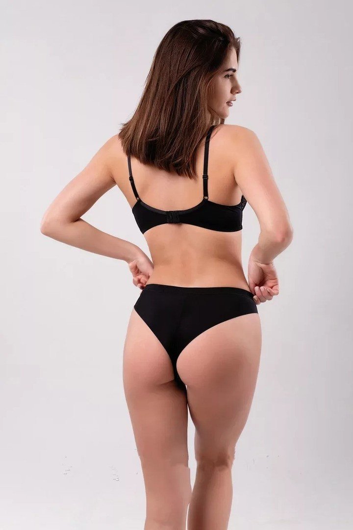 Sutien neted cu corector. Bretele fixe ​​cu regulator de lungime. Chiloți cu talie medie. Sutien cu efect push-up.