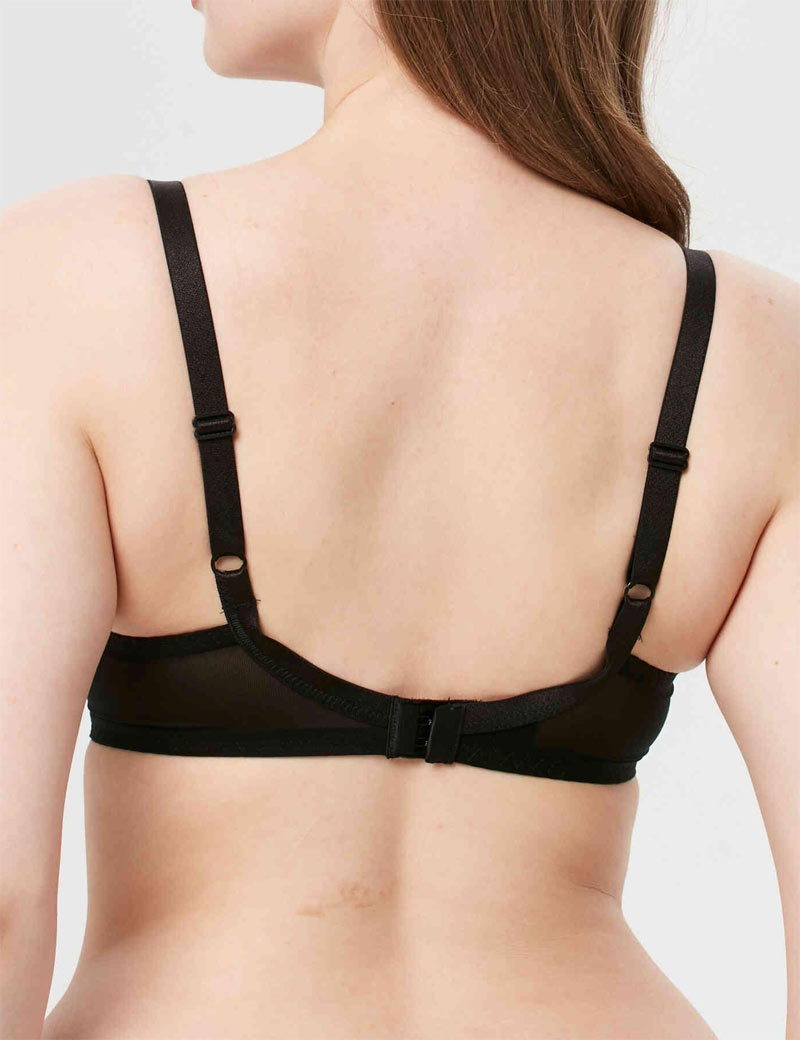 Un sutien clasic, realizat dintr-o țesătură de dantelă inelastică și o țesătură elastică tricotată. Densă pe carcas, cupe de fund de fund la dublu cu cauciuc spumă subțire.