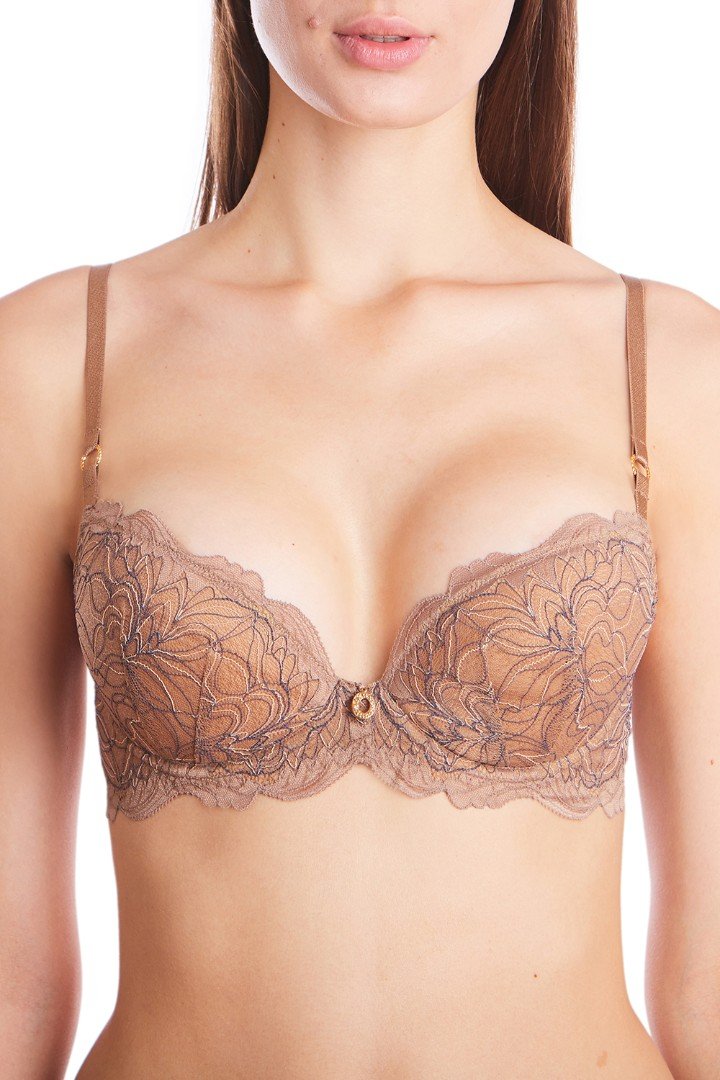 Sutien cu cupe dense. Decorat cu dantelă delicată.
