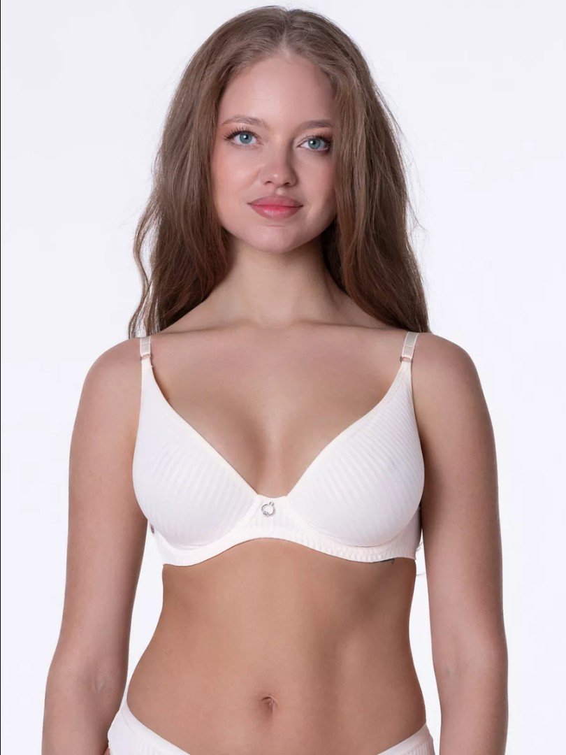 Cupa moale turnata, cupa superioara din tesatura structurata tricotata, stratul interior din plasa elastica turnata. Partea superioara a cupei si bratul sunt marginite cu o nervura delicata pentru cea mai buna potrivire si fixare. Sutienul este decorat cu bijuterii.